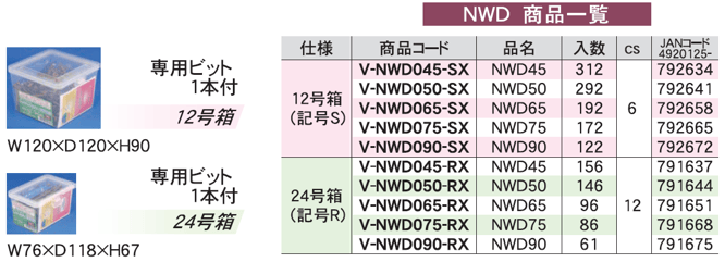 | NWD | NWD45 | 156本 | ビット付 | 24号箱 |