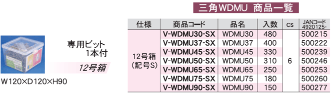 | WDMU | WDMU30 | 480本 | ビット付 | 12号箱 |