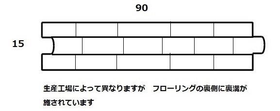 上記は、90巾のフローリングで、竹平積層の例です。フローリングの幅(90ミリ)に対して竹材を積み重ねていくので、フローリング表面から見ると、竹を容易に想像でき、竹の節がはっきりとわかります。